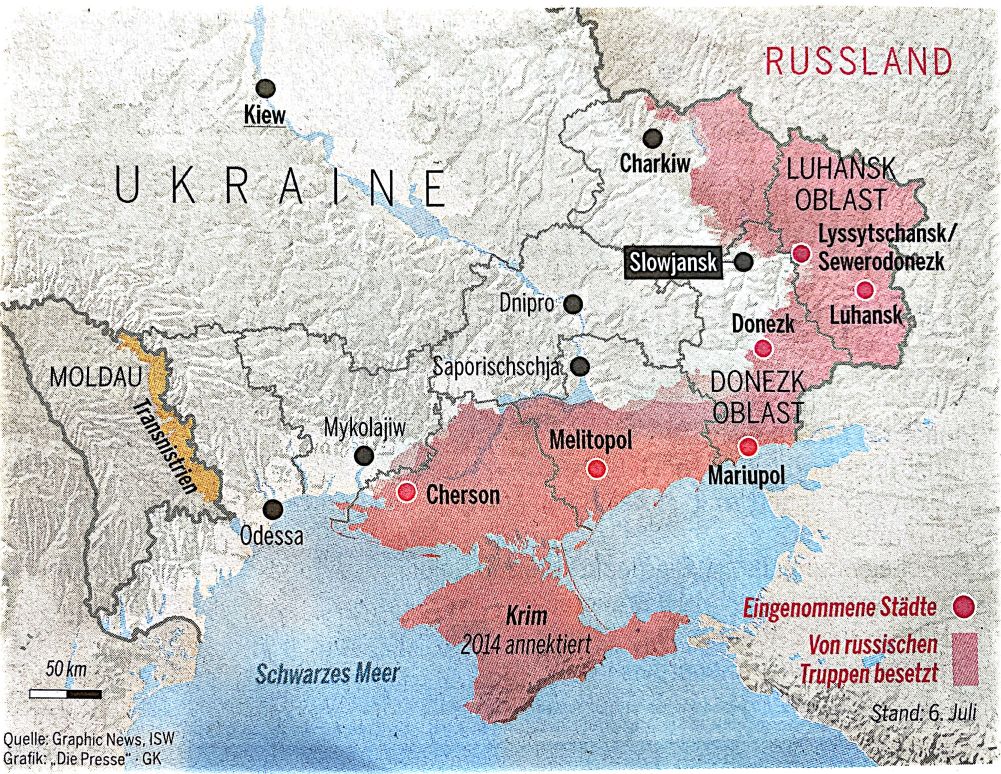 Landkarte UA Stand 9. Juli 2022